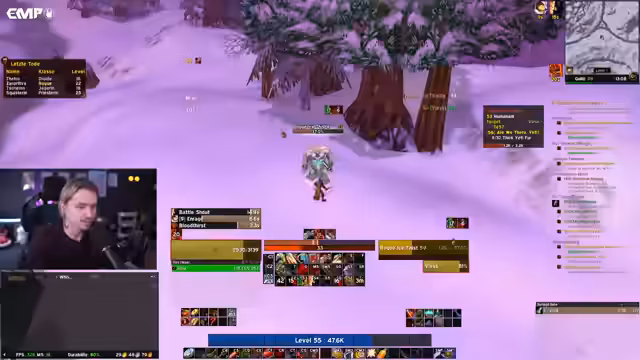 08:55:43Auf dem Weg zu den Yetis in Winterspring macht der Streamer eine Pause, um den Status der BAD-Gruppe zu klären. Er ist verärgert, dass sie nur die Arena absolviert haben, da das für einen hochleveln Charakter wenig ist. Er versucht, Kutcher via Discord zu erreichen, um eine Uldaman-Gruppe zu koordinieren, und diskutiert gleichzeitig über die Effektivität des Yeti-Grinds für das Level-up.