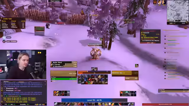 12:25:46Die Gruppe bereitet sich auf einen Raid vor, indem sie über die Onyxia-Quest und die Notwendigkeit von Escort-Quests diskutiert. Der Streamer spricht über die Herausforderungen des Tankens in einer Fury-Spezialisierung ohne Tactical Mastery, was das Wechseln von Stances erschwert. Es folgt eine Diskussion über die Mechaniken von Raids, wie das Vermeiden von Links und das Koordinieren von Gruppen-Heals. Die Gruppe bespricht die Vorbereitung auf die Arena und den Hundemeister, während sie über Loot-Chancen und Item-Drops informiert ist. Dabei geht es um die Optimierung der Ausrüstung und die Vorbereitung auf anspruchsvolle Kämpfe wie den Arena-Boss.