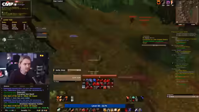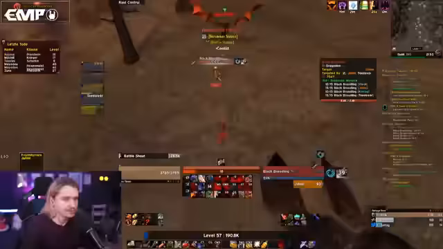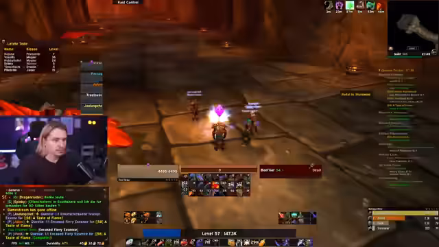 11:30:46Während des BRD-Dungeons kämpft die Gruppe gegen Bosse und begegnet Herausforderungen mit Mob-Pulls, Disarm-Makros und Todesfällen. Die Gefahr von Höhlen und Disconnect-Potenzial wird diskutiert, mit Überlegungen zur Quest-Abgabe für Dragonkin Menace und Taste of Flame. Ein Spieler stirbt, was starke Reaktionen in der Community auslöst, aber Unterstützung wird mobilisiert, um die Gruppe zu motivieren. Dungeon-Mechaniken und Boss-Strategien werden angepasst, um Sicherheit zu gewährleisten.