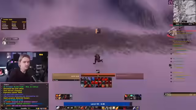 14:18:31Nach über 14,5 Stunden Streamzeit blickt der Streamer auf den Fortschritt zurück. Er ist nahe Level 60, doch das Erreichen des Maximums erscheint unrealistisch. Man spricht über die optimale Stufe für zukünftige Dungeons, um diese sicher zu bewältigen. Die Gruppe plant, sich im Senkenden Canyon neu zu formen, um Elite-Mobs zu jagen, und auch die Westliche Pestlämer werden als nächstes Ziel ins Auge gefasst.
