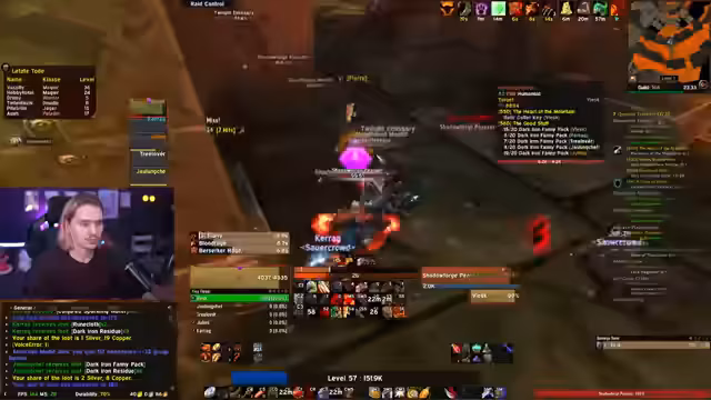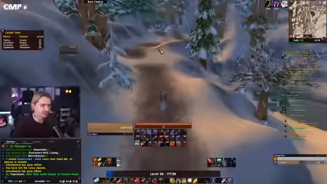 15:26:47Nach einer längeren Streaming-Phase, die bereits über 16 Stunden andauert, interagiert der Streamer lebhaft mit dem Chat, beantwortet Fragen zu Spielmechaniken und teilt persönliche Geschichten. Dabei geht es um Erlebnisse mit Haien im Spiel, das Nutzen von Add-ons wie AtlasLoot für Dungeon-Übersichten, und den Austausch über den eigenen Hintergrund als Variety-Streamer, der anfangs keine Erfahrung mit World of Warcraft hatte. Der Chat wird aktiv einbezogen, um Tipps für gefährliche Gebiete oder Quests zu geben, und es werden humorvolle Clips aus früheren Streams erwähnt, die für gute Unterhaltung sorgen.