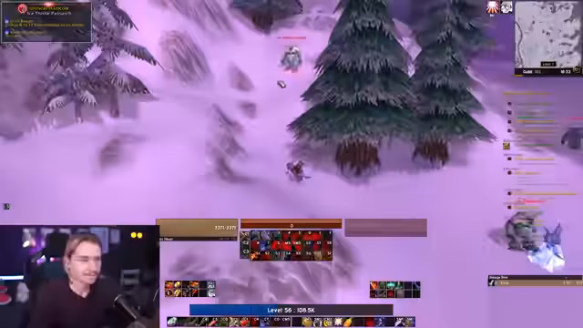 02:12:05In Winterspring wird der Fokus auf Yetis und Furbelks gelegt, um Quests abzuschließen und Erfahrung zu sammeln. Der Streamer farmt Yetis nördlich von Avalon und sucht nach dem Yeti-Boss für eine spezielle Quest. Parallel dazu wird das Farmen von Kräutern erwähnt, um Ressourcen zu sammeln. Es gibt eine Verwirrung bezüglich der Songflower, da ein Buff-Problem auftritt, das der Streamer jedoch löst, indem er den Layer wechselt, um die Ressource sicher zu farmen. Der Level 56-Zielpunkt bleibt klar im Fokus.