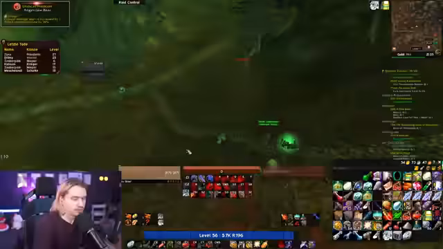 12:19:28Während des Dungeon-Runs wird die Gruppe über die Anzahl der benötigten Quest-Items wie kleine Drachen informiert, und der Streamer erreicht Level 57. Es folgt eine Diskussion über den Respawn von Mobs und die Notwendigkeit, Quests im Searing Gorge anzunehmen. Die Gruppe koordiniert den Flugpunkt nach Sumpfland, um Zeit zu sparen, und bereitet sich auf einen schnellen Run ohne Vollclear vor. Dabei wird über Gifte für das Dungeon besprochen, deren Dauer und Effektivität, sowie über Mana-Probleme und die Notwendigkeit, Cooldowns zu managen. Die Interaktion mit der Community wird durch Fragen an den Chat zur Strategie und Gruppenzusammensetzung unterstützt.
