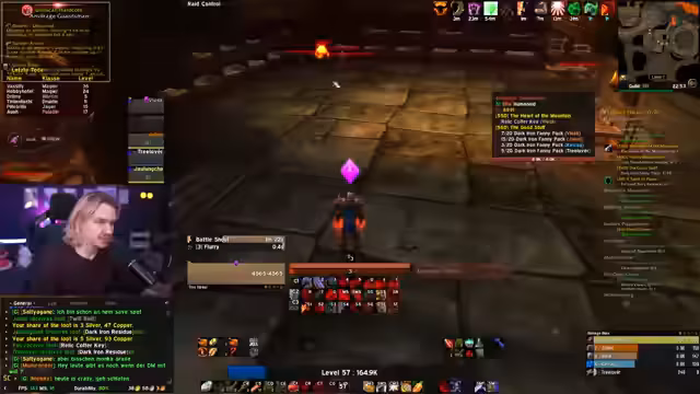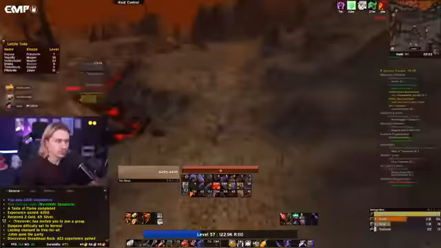09:51:25Nachdem er sich die Buffs gesichert hat, konzentriert sich der Streamer auf die Fertigstellung von Quests in Searing Gorge, wie 'Flames Casing', das das Töten von Elite-Mobs erfordert. Die Organisation der Gruppe wird zunehmend problematisch, da geplante Spieler ausfallen und Ersatz schwer zu finden ist, was die Pläne für einen vollständigen BRD-Run gefährdet.