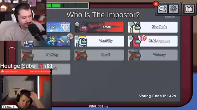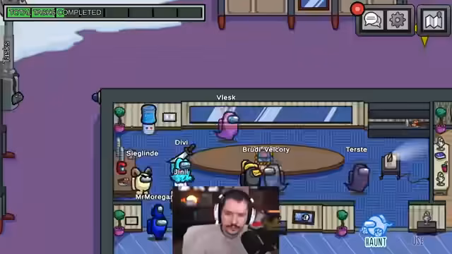 Es wurde in der Lobby eine Runde Among Us gestartet, in der eine Phase intensiver logischer Analyse begann. Die Spieler rekonstruierten Alibis und Bewegungsabläufe, was zu einer langen und zermürbenden Phase führte. Die Verwirrung war groß, als mehrere Spieler fälschlicherweise aus dem Spiel geworfen wurden.