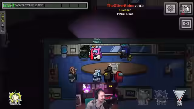 00:31:50Die Lobby ist voll, das Spiel beginnt. Zuerst geht es um das Verteilen von Spezialrollen wie Sheriff, Medic und Camouflager. Ein erster Toter wird im Lab gefunden, was sofort eine Diskussion über die möglichen Rollen der Anwesenden auslöst. Der Streamer, der als Medic agiert, vermutet den Trapper als Täter und gibt bekannt, dass er eine Person geschützt habe. Es wird über die verschiedenen Tötungsarten und Bewegungsmuster der Spieler diskutiert, um den Mörder zu finden.