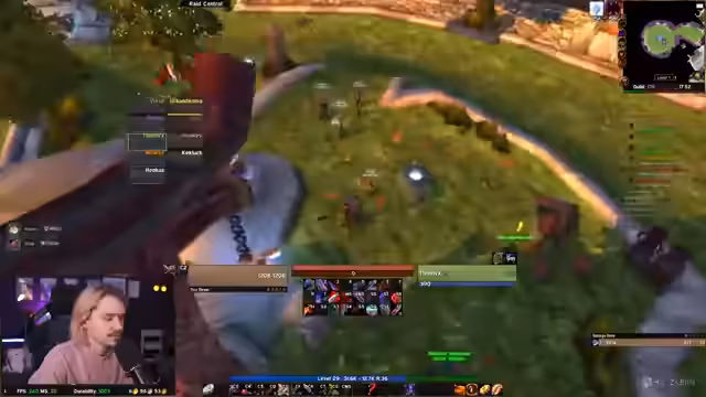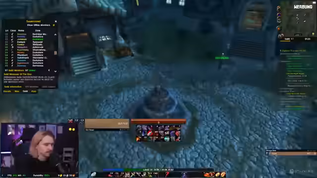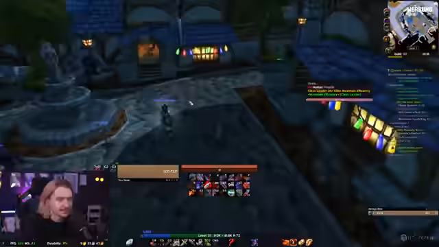 00:26:27Nachdem der Streamer durch verschiedene Gebiete wie den Dämmerwald questet, stehen organisatorische Themen im Vordergrund. Die intensive Diskussion über den Tod von Obsessed, der aufgrund eines Buggy-Addons nach einem Disconnect starb, führt zu dem Vorschlag, ihn von jemandem außerhalb der Gilde wieder hochzuziehen. Außerdem wird die für 18 Uhr angekündigte erste Nachtelfen-Besprechung thematisiert, um den Anführer für die Nachtelfen zu wählen.
