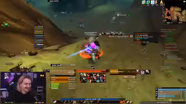 10:55:54Der Kampf gegen Moladin ist chaotisch. Er ist 35 und der Streamer kann ihn nicht anvisieren. Es werden Taktiken wie Kiten, Disarm und Hamstring diskutiert, um den Schaden zu minimieren. Der Streamer hat Wut-Rage, muss aber ausweichen, um nicht getötet zu werden. In der Zwischenzeit lootet er und hat Schwierigkeiten, die benötigten Gegenstände aufzunehmen, da er nicht im Combat ist und die nicht looten kann.