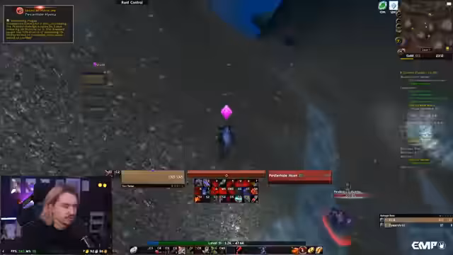02:29:46Es wird entschieden, Morladim mit einer kleinen Gruppe zu farmen, aber es stellt sich heraus, dass es sich um einen 35er Elite-Mob handelt, während die Gruppe nur Level 28 ist. Stattdessen wird die Jagd auf andere Mobs wie die Wargans aufgenommen. Gleichzeitig gibt es Probleme mit einem hyperspawnten Area, in dem sich zu viele Gegner befinden, die man aufgrund von Mana- und Problemen nur schwer kontrollieren kann.