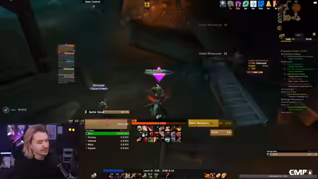 00:40:22Der Streamer plant das Questen im Dämmerwald, da es perfekt für sein Level ist, da durch viele Dungeon-Läufe in den letzten Tagen Sumpfland übersprungen wurde. Es werden verschiedene Gruppenformationen erwähnt, wie die Gnome-Regan-Truppe mit Kutscha und Dalu oder die Shadowfang-Keep-Gruppe mit Tashi und Co. Deadmines werden nur für Pius als sinnvoll angesehen, da die anderen Spieler dort keine Erfahrung mehr erhalten würden.