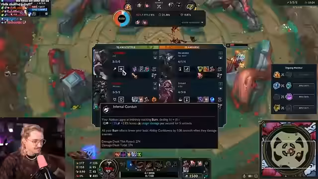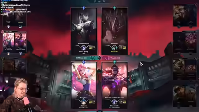 01:05:06Vor dem eigentlichen Start der Turniergruppe bereitet sich der Streamer gemeinsam mit seinem Partner Willy Bonkers vor. Die erste Gruppe ist noch im Gange, was zu Verzögerungen führt. Der Streamer betont, dass das Spiel stark vom Zufall (RNG) abhängt, aber auch von der Champions-Wahl und den gespielten Verstärkungen (Augments). Er und Willy kommunizieren über Discord und versuchen, eine Strategie für die kommende Runde zu entwickeln, wobei der Fokus auf Crowdfavorite und Bravery Champions liegt.