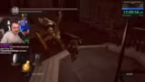 01:14:49Nachdem der Streamer mit der geupgradeten Hellebarde die Gargoyles bezwungen hat, steigt er auf die große Keule um. Er kämpft gegen den Capra Demon, dessen Kampf sich als schwierig erweist, und macht sich dann auf den Weg zu Ceaseless Discharge. Hier fängt er an, die Titanite Brocken für die Waffenupgrade zu farmen, was aufgrund der niedrigen Drop-Rate als sehr frustrierend und zeitaufwendig beschrieben wird.