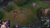 07:34:43Ein offensichtliches Missverständnis innerhalb des Teams führt zu einem chaotischen Spielende. Der Streamer und seine Mitspiler scheinen sich nicht auf eine gemeinsame Strategie geeinigt zu haben, was zu einer unkoordinierten Attacke und einem verlorenen Teamfight führt. Trotz der Niederlage äußert der Streamer Respekt für den gegnerischen Pick und die Spielweise. Er appelliert an die Kommunikation, um solche Situationen in Zukunft zu vermeiden.