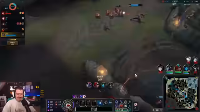 07:23:18Während eines laufenden Spiels wertet der Streamer seine eigenen Entscheidungen und die seiner Mitspieler aus. Er beschreibt seine taktischen Manöver, wie das Opfern und das anschließene Ziehen des Gegners. Er analysiert den Game-State kritisch und erkennt Fehler bei der Durchführung von Combos oder der Item-Build-Entwicklung. Diese detaillierte Analyse zeigt sein tiefes strategisches Verständnis und seinen Willen, das Spiel zu verbessern.