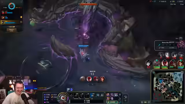 05:52:39Im Spielverlauf wird die Positionierung von Lulu als Schlüssel für den Erfolg diskutiert. Es wird ein potenzieller Collapse geplant, der jedoch scheitert, da der gegnerische Evelyn nicht anvisiert werden kann. Der Streamer beschreibt seine Missgunst gegenüber Champions wie Galista, da er glaubt, dass solche Champions in Solo-Q nicht erfolgreich gespielt werden können, und ermahnt seine Mitspieler, mehr an sich zu glauben und ihr Spiel zu verbessern.