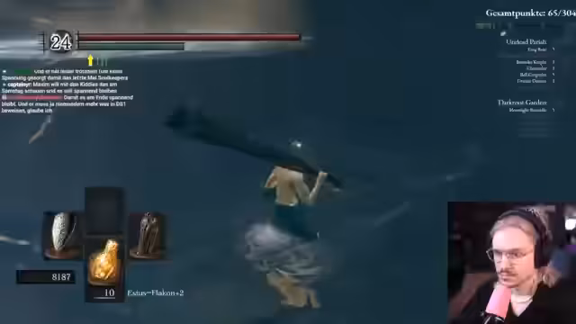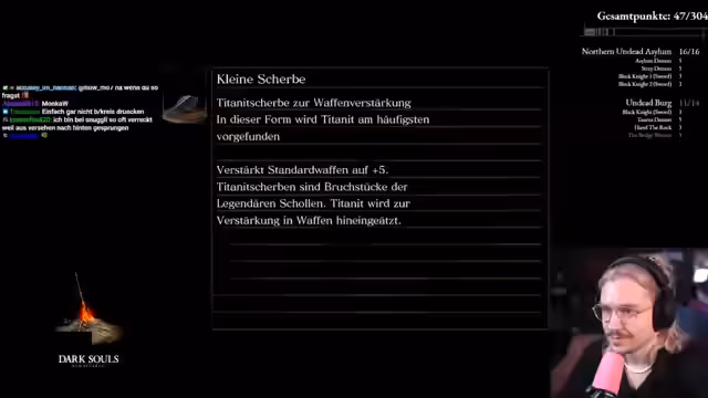Ein nervöser Versuch, Dark Souls ohne einen einzigen Tod zu durchspielen. Hochspannung und strategische Vorsicht sind im Fokus. Der Spieler startet einen No-Death-Run, bei dem jede Entscheidung über Sieg oder Niederlage entscheiden kann. Er ist ängstlich und fokussiert, was den Druck enorm erhöht.