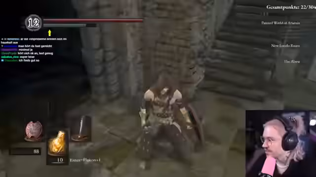 02:30:13Der Streamer hat keine Seelen und kann ein bisschen leveln. Der Streamer könnte zu Kuelag runtergehen oder sich erst Stone Armor holen. Der Streamer holt sich erst den Great Club, da die Waffe einfach viel zu gut ist. Der Streamer braucht ein bisschen stärker und will auf so viel Vitality wie möglich. Blighttown ist das nächste Ziel. Der Streamer nimmt Slugs für große Scherbe mit. Der Streamer hat zum Glück schon vier große Scherben durch die Eidexen gekriegt. Der Streamer nimmt die Gargoyles nebenbei kurz mit und geht zu den Scheiß-Golems. Der Streamer macht Cuprider normal, aber halt, während er Stone Armor trägt wahrscheinlich. Der Streamer wird von einem Golem nicht gehört und fragt, was er für eine Schulter hat. Der Streamer steht genau hinter ihm. Der Streamer kriegt zwei Jaucheküchlein und kann sich selber vergiften. Der Streamer kann den Club nicht anvisieren und der Golem droppt nicht. Der Streamer hält kurz die drei HP wieder hoch und fällt gleich irgendwo runter. Der Streamer atmet erst wieder, wenn er safe unten am Aufzugang angekommen ist. Der Streamer muss sich unten jetzt leider ans Bonfire setzen, da hier noch eine Fliege ist und er keine Lust hat, dass die ihn aus der Luft kickt.