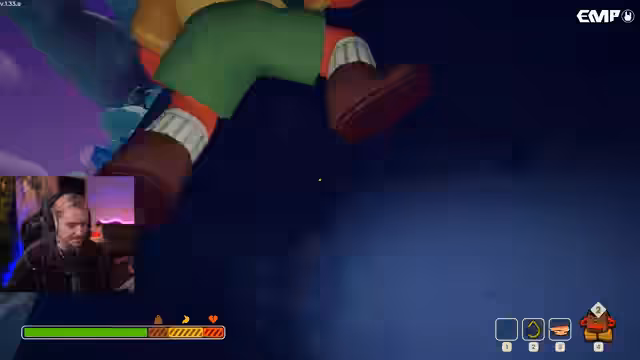 03:06:50Nachdem das technische Problem mit dem Spielstart gelöst scheint, indem der Streamer eine eigene Lobby hostet, beginnt der gemeinsame Versuch, das Spiel zu spielen. Die ersten Minuten im Spiel sind geprägt von Misserfolgen: ein Spieler stirbt sofort, ein anderer klettert eine falsche Stufe hoch, und die Spieler verlieren sich. Es kommt zu leichten Streitigkeiten über Spielmechaniken und Kollisionen. Das Hauptziel ist es, gemeinsam auf einen Berg zu klettern, während dabei Gegenstände wie Pilze und Cookies gesammelt und getestet werden.