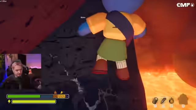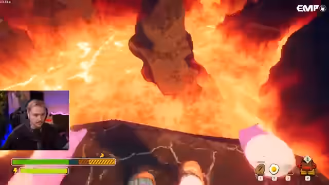 04:58:37Im finalen Abschnitt der Map gelangt die Gruppe in ein vulkanartisches Gebiet. Hier ist die Lava ständige Bedrohung und der Zeitdruck wird massiv. Die Spieler müssen eine Kette benutzen und geschickt über erhitste Felsen klettern. Der Streamer warnt mehrmals vor den Gefahren, wie dem schnellen Erhitzen der Steine und der steigenden Lava. Jeder Schritt muss überlegt sein, um nicht in der Glut zu enden.