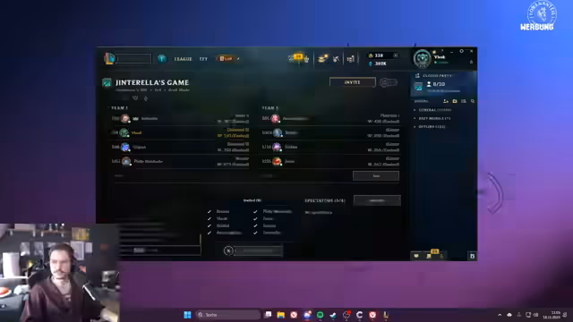 00:07:14Der Stream startet mit einem Flex-Q-Match, einem 'Boys vs. Girls'-Game zwischen Teams, die unter anderem Bröki, Chef Strobl und Yushi sowie Ginny und Jintarella umfassen. Der Streamer plant, solange zu spielen, bis es Spaß macht, und erwägt einen zweiten Stream am Abend, nachdem er persönliche und berufliche Aufgaben erledigt hat. Er erwähnt, dass er wegen neuer Zahnschmerzen eine schwierige Zeit hat, aber hofft, dass es bald besser wird.