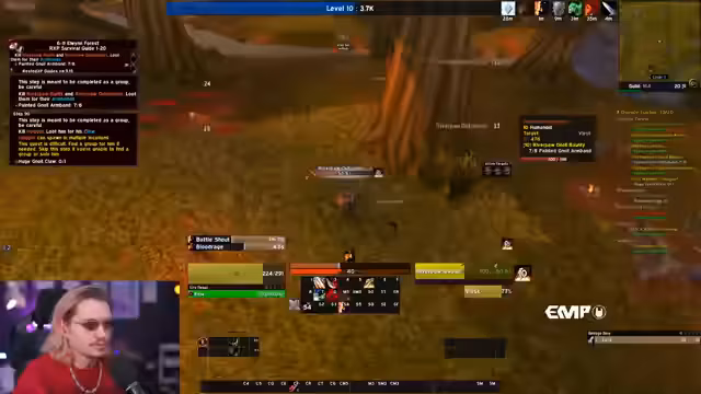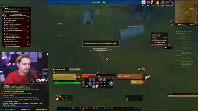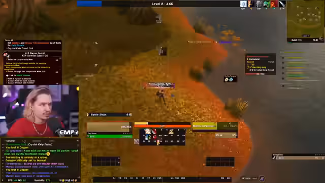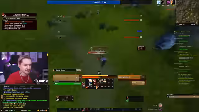 08:13:02Der Streamer bezeichnet den Tag als 'richtigen Unglückstag' aufgrund der vielen Tode. Er erinnert sich an einen früheren Vorfall mit einem Streamer namens 'Chris', bei dem es zu einem Missverständnis in einem Spiel mit 'Schrauben' kam. Chris schadete sich selbst, dachte aber, der Streamer wäre dafür verantwortlich. Der Streamer reflektiert über Situationen, in denen man selbst der 'Dumme' ist. Er questet weiter im Sumpfland und fühlt sich unsicher in Dungeons, weil er neu im Spiel ist. Er plant jedoch, morgen mit Flask ins 'Blackfathom Deeps' zu gehen, da dieser Erfahrung im Dungeon hat.