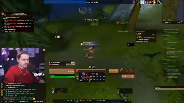 07:32:22Der Streamer stellt fest, dass heute extrem viele Spieler in World of Warcraft gestorben sind, was er als 'kritisch' und 'mega kritischen Käse' bezeichnet. Er erhält seinen eigenen Todesclip vom Chat, was er als 'Cybermobbing' abtut. Die Konversation dreht sich um ein geplantes Event mit 'Blaster' und den darauffolgenden Tod. Der Streamer wird wegen seiner 'Panik-Handlungen', insbesondere dem Drücken der 'S-Taste', kritisiert, was dazu führt, dass Mobs nicht weglaufen und es zum Tod kommt. Er erklärt, dass er in Panik keine Kontrolle mehr über seine Aktionen hat.