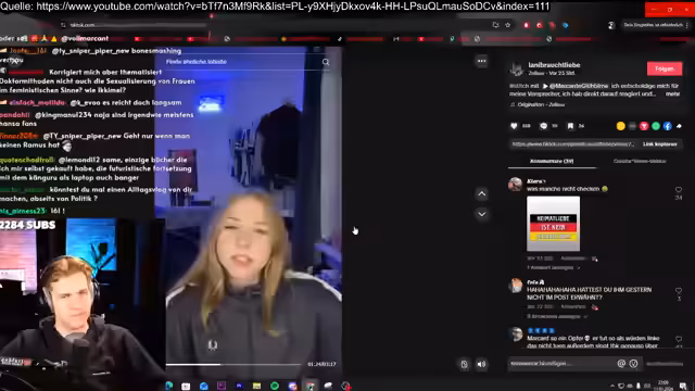 00:33:41Ein großer Teil des Streams widmet sich der Reaktion auf TikTok-Videos, die dem Streamer Victim Blaming vorwerfen im Kontext von gewaltverherrlichenden Musiktexten. Er stellt klar, dass seine Aussage, man solle sich nicht wundern, wenn rechte Typen bestimmtes Verhalten zeigen, aus dem Kontext gerissen wurde. Es werde keinesfalls die Schuld beim Opfer gesehen, sondern darauf hingewiesen, dass die Verbreitung und Normalisierung von frauenfeindlichen Inhalten in der rechten Szene die Gefahr von Gewalt erhöhe, was im Sinne aller vermieden werden sollte.