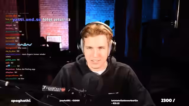 00:53:47Der Streamer wird von Rezo mit über 5.000 Zuschauern geraidet und begrüßt die neuen Besucher. Er dankt für den großen Support und erwähnt, dass er vorhin Rezos Stream gesehen hat, in dem es um einen Christen-Iceberg ging. Ironisch kommentiert er, dass sie hier keinen christlichen Content machen, sondern Nazis ärgern, und kündigt an, dass er und Rezo vielleicht zusammen Nazi-TikToks reagieren.