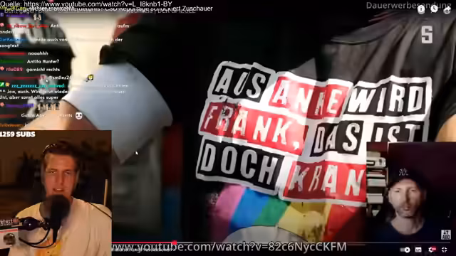 00:35:58Ein Zuschauer berichtet, durch die Streams aus der rechtsextremen Szene ausgestiegen zu sein. Es wird die Frage aufgeworfen, wie man die positive Stimmung von Veranstaltungen wie dem CSD ablehnen kann. Es wird die Aussage kritisiert, dass der Slogan "Fuck AfD" Andersdenkende angreift. Es wird in Paint erklärt, dass queere Menschen einfach nur ihr Leben leben wollen, während die AfD dies nicht akzeptiert und ihre Lebensrealität zerstören will. Es wird kritisiert, dass Störte Priest sich über Gegendruck wundert, wenn die AfD provoziert und beleidigt. Es wird die Aussage kritisiert, dass am Bundestag keine Regenbogenflagge etwas verloren hat, weil sie nicht die Mehrheit repräsentiert und nicht neutral ist. Es wird betont, dass Menschenrechte nicht neutral sein müssen. Es wird ironisch angemerkt, dass Störte Priest für die Sanktionierung von Personen ist, die eine Regenbogenflagge am Bundestag hissen.