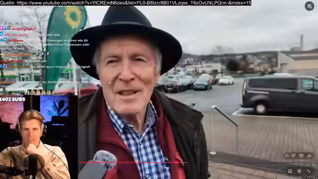 00:34:54Der Streamer zeigte ein Interview, das den AfD-Stadtrat Jo Meurer aus Hessen zeigt. In diesem äußerte der Politiker rassistische Thesen und leugnete den Holocaust. Der Streamer kommentierte die Aussagen scharf und nannte den Mann eine Gefährdung für die Gesellschaft. Es wurde thematisiert, dass der Politiker wegen Kindesmisshandlungen und Holocaustleugnung angeklagt ist und seine Position als Lehrer und Stadtrat als inakzeptabel bezeichnet.