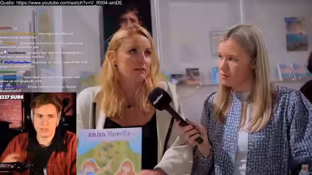 02:17:11Der Streamer berichtet von der Messe in Halle, wo er Susanne Dagen als Ausstellerin identifiziert und ihr vorwirft, vor AfD-Wänden zu posieren und mit rechten Akteuren wie Götz Kubitschek und dessen Sohn, der der Identitären Bewegung angehört, zusammenzuarbeiten. Er kritisiert, dass auf der Messe Bücher des Jung-Europa-Verlags, der mit der Identitären Bewegung in Verbindung steht, beworben werden. Der Streamer sieht die Veranstaltung als einen Ort für freie Rede und Austausch, während die Außenstehenden, wie er und Vincent, aufgrund ihrer politischen Meinung nicht akkreditiert waren.