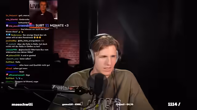 01:21:14Der Streamer scherzt über seine neue Rolle als Influencer und seine Definition von Erfolg durch Abonnentenzahlen. Er erwähnt eine Sponsoring-Anfrage für ein Puzzlespiel mit einer Anime-Frau, für die er 10 Dollar und 5 Dollar pro Installation (maximal 40 Personen) erhalten würde. Dies kommentiert er ironisch als 'zu viel' Geld, das ihn direkt eine soziale Klasse aufsteigen lassen würde. Er fragt seine Zuschauer, ob sie ihn dann noch akzeptieren würden. Er freut sich über 1111 Abonnenten und bittet darum, diese Zahl nicht zu überschreiten, um sie beizubehalten. Im weiteren Verlauf spricht er über die Gründung der Jugendgruppe der AfD, der 'Jungen Alternative', am 29. und 30. November in Gießen. Er erklärt, dass viele Menschen dagegen protestieren werden. Er teilt Hintergrundinformationen über die Hallenbesitzer in Gießen, denen auch eine Halle in Halle gehört, in der kürzlich eine rechtsextreme Buchmesse stattfand. Die Besitzer behaupten, dass jeder eine Halle buchen kann, auch die Antifa. Das Zentrum für politische Schönheit hat daraufhin eine Halle neben der AfD-Halle in Gießen angefragt. Sollte dies genehmigt werden, plant der Streamer, dort einen 'markantigen Markantstand' zu eröffnen, an dem er T-Shirts aus Bangladesch für 30 Euro verkaufen und Welse tätowieren würde, um 'reich zu werden und euch auszubeuten', ganz nach dem Vorbild eines 'Gollern'.