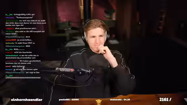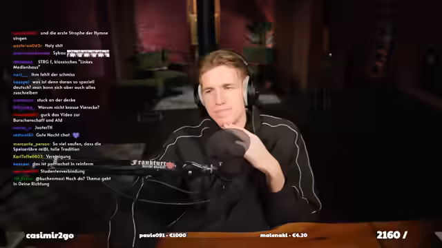 04:35:54Nachdem er eine Doku vorübergehend abgelehnt hat, konzentriert sich der Streamer auf die Analyse eines Videos von Kassandra Sommer. Darin wird ein junger AfD-Aktivist interviewt, der seine politische Entwicklung und seine Mitgliedschaft in einer schlagenden Burschenschaft erklärt. Der Streamer kritisiert das Interview als gestaltet und reagiert auf die Aussagen des Aktivisten über sein Votum, seine Herkunft und seine Ansichten zu Rechtsextremismus und Burschenschaften.
