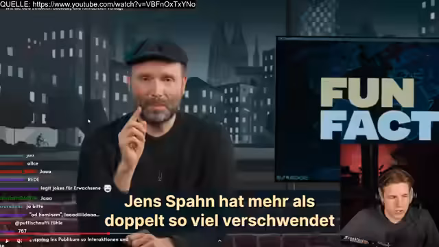 00:15:06Ein Komikerprojekt namens Fun Facts steht kurz bevor. Der Streamer wird eine Folge moderieren und äußert seine Nervosität im Angesicht eines Publikums, das ihn mögen könnte. Er wünscht sich stattdessen ein Publikum, das ihn kritisch sieht, um sich wohler zu fühlen. Marco Wickling und dessen Format werden vorgestellt, in dem es um politische Themen wie die CDU, Friedrich Merz und Gaslobby geht, was der Streamer als gutes Startthema für seine Moderation ansieht.