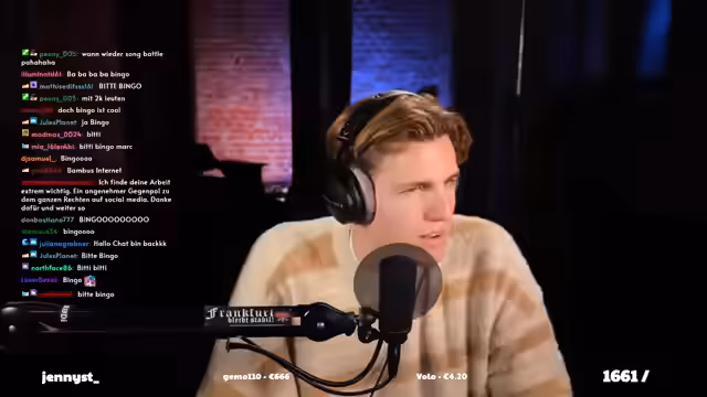 00:44:10Der Streamer wird von einem erfolgreichen Gaming-YouTuber zu einem Fortnite-Turnier mit 20.000 Euro Preisgeld eingeladen. Er entscheidet per Chat-Umfrage, ob er teilnimmt, und sagt trotz anfänglicher Bedenken der Community zu. Er behauptet, früher der beste Fortnite-Spieler Deutschlands gewesen zu sein, und plant, ein Team zu finden. Die Reaktionen im Chat sind gemischt – manche sehen es als Respektverlust, andere als humorvolles Sideprojekt.