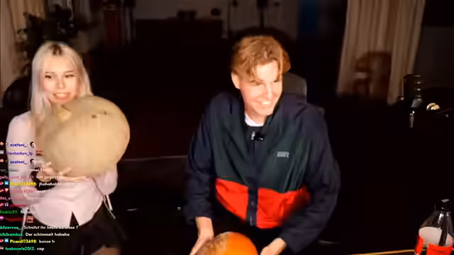 00:41:52Die Streamer reagieren auf ein virales Video von zwei Männern mit SS-Tätowierungen, die ihre Fähigkeiten im Kickboxen präsentieren. Sarah, als erfahrene Kampfsportlerin, äußert sich dazu und findet die Darstellung beeindruckend. Danach wechselt der Fokus zum Hauptevent des Abends: dem Kürbisschnitzen. Sarah enthüllt, dass sie die Kürbisse extra für den Stream gekauft hat. Es kommt zu einem humoristischen Streit über die Verteilung der Kürbisse und die Werkzeuge, wobei Sarah ihren 'schmutzigen' Kürbis verteidigt und Marc den 'sauberen' erhalten soll.