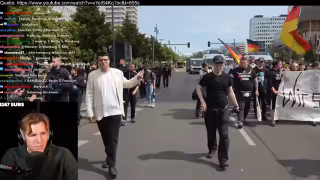 03:11:36Die Demo der AfD-Jugend wird als „Truppe der Minderjährigen“ bezeichnet, die langsam losmarschieren möchte. Es wird kritisiert, dass mehr Journalisten als Demonstranten anwesend sind. Ein Teilnehmer mit einem T-Shirt der rechtsextremen Band „Kategorie C“ weigert sich, mit der Presse zu sprechen, was als Zeichen mangelnder Argumente gedeutet wird. Der Streamer kommentiert ironisch die Frisur eines Teilnehmers als „offizielle Toni-Groß-Frisur“. Ein weiterer Fokus liegt auf der Entwicklung von „Celine“, einer ehemaligen LGBTQ+-Aktivistin, die sich zu einem „Nazi-Schläger-Girl“ und schließlich zu einer „Nazi-Treadwife“ entwickelt hat. Dieses Phänomen wird als „Cosplay“ beschrieben, bei dem Frauen die Rolle einer traditionellen Frau im nationalsozialistischen Sinne einnehmen, obwohl dies nicht ihrer wahren Identität entspricht. Stella, eine weitere Aktivistin, wird ebenfalls thematisiert, wobei Gerüchte über die Veruntreuung von Vereinsgeldern der „Chemnitz-Revolte“ für Nagelstudiotermine erwähnt werden. Die Demo wird als „lächerlich“ und als Belästigung für die Berliner Bevölkerung bezeichnet, da sie den Berufsverkehr blockiert.