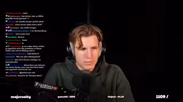02:55:10Der Streamer äußert ironisch die Hoffnung, dass Mio Trautner zum Leiter der AfD-Jugend gewählt wird, da er glaubt, dies würde die AfD langfristig zugrunde richten. Er betont, dass dies nicht aus Hass, sondern aus einer Einschätzung der Auswirkungen seiner Führung resultiert. Anschließend wird eine Zuschauerfrage zu Ananas auf Pizza beantwortt, wobei der Streamer seine Abneigung gegen Ananas generell äußert. Die Diskussion wendet sich kurz der wirtschaftlichen Lage zu, wobei ein Kommentar über die Schwierigkeit, mit zwei Vollzeitgehältern und einem Kind auszukommen, als „Real Talk“ und „krass“ bezeichnet wird. Der Streamer kritisiert die Erwartungen an Familien, Rücklagen zu bilden, für die Ausbildung der Kinder zu zahlen und gleichzeitig psychisch und physisch leistungsfähig zu sein, trotz hoher Arbeitsbelastung und fehlender Erholungsmöglichkeiten.