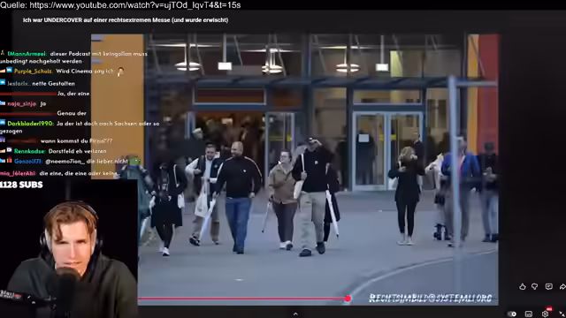 01:58:30Der Streamer und sein Team wurden auf der Buchmesse enttarnt, nachdem sie etwa 15 Minuten dort unterwegs waren. Er beschreibt die Situation als sehr beängstigend und bemerkt, dass sein Herz „komplett in die Hose gerutscht“ sei. Er saß im Auto und wartete, während sein Kollege, den er humorvoll „Kollege Schnürschuh“ nennt, mit seinem Handy angerufen wurde und panisch berichtete, dass sie „hops genommen“ und der Dreh abgebrochen werden müsse. Der Streamer zeigt Verständnis für die Panik seines Kollegen, da sie sich in einer Halle voller Menschen befanden, die „gar keinen Bock auf dich haben“ und zum Teil wussten, wer sie sind, darunter Gruppen wie JN, Dritter Weg und die Identitäre Bewegung, die „bewiesenermaßen gut auch mal zu hauen können“. Trotz der angespannten Lage und der Drohung mit einer Anzeige bei Veröffentlichung von Material, motivierte Marc ihn, einen zweiten Versuch zu wagen. Marc hielt eine „Motivationsrede“ und überzeugte ihn, mit einem großen Gimbal und beiden Mikrofonen „full on“ in die Menge zu gehen, als wäre es das Normalste der Welt. Obwohl dieser zweite Versuch „krachend gescheitert“ ist, betont der Streamer, dass sein eigentliches Ziel ein unvoreingenommenes Gespräch gewesen wäre, was jedoch nicht möglich war, sobald er sich als „zentristisch-liberaler Content Creator“ zu erkennen gab. Er schließt den Abschnitt mit einem Cliffhanger, der die weitere Entwicklung des zweiten Versuchs offenlässt.