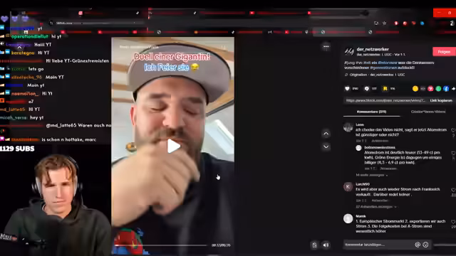 02:24:00Der Stream beginnt mit einer längeren Debatte über Atomenergie. Die Position ist klar, dass die älteren Atomkraftwerke zu alt sind, um wirtschaftlich wieder anzuschließen und modernere Anlagen teuer sind und weiterhin Atommüll verursachen. Die Energiepolitik solle sich vollkommen auf erneuerbare Energien konzentrieren, die bereits bei fast 70% liegen. Eine persönliche Auseinandersetzung eskaliert, als eine Dame den Akademikerstatus des Streamers in Zweifel zog, woraufhin er ihr die fehlende Argumentation und die persönlichen Angriffe vorwarf.