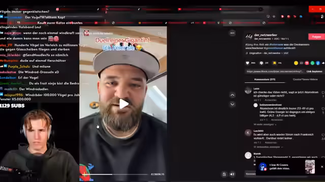 02:09:09Nach dem Messe-Besuch richtet sich der Fokus des Streams auf die Reaktion auf die Veröffentlichung. Der Streamer präsentiert Kritik, insbesondere von einem sogenannten 'Netzwerker', der Windkraftanlagen angreift und Atomkraftwerke befürwortet. Es folgt eine detaillierte Entgegnung des Streamers, der die Argumente des Kritikers als falsch und die Darstellungen von Windparks als Umweltschädigung zurückweist.