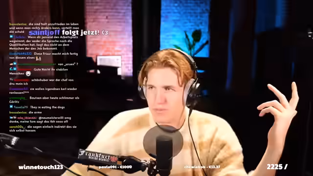 02:20:51Ein Zuschauer spendet 1000 Euro für den Streamer mit der Begründung 'für den Porsche'. Der Streamer zeigt sich sichtlich überwältigt und dankt ihm für den 'kranken Support', obwohl er sich unwohl dabei fühlt. Er betont, dass er nur Liebe ausdrücken könne und den Spender zu einem 'Spritzo' einladen würde, falls er jemals ein Fahrzeug besäße. Die Geste wird als Teil der loyalen Community gewertet.