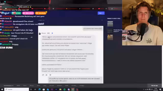 02:48:42Der Streamer bereitet sich auf eine Reise nach Leipzig vor, um Vincent zu treffen, und präsentiert historische Dokumente aus der NS-Zeit und der Weimarer Republik, darunter ein Gesundheitsbüchlein von 1940 und illustrierte Zeitungen von 1929, um über Feminismus und die damaligen Ansichten zu diskutieren. Er zeigt auch Nachdrucke von Zeitungsausschnitten aus der frühen NS-Zeit. Der Streamer hofft, dass ein Zuschauer den TikTok-Livestream aufgenommen hat und auf YouTube hochladen kann. Er reagiert auf ein Video, in dem er selbst vorkommt und sich über sein Aussehen lustig macht. Er erwähnt, dass er an diesem Tag lange unterwegs war und an einer Nazi-Demo in Bautzen teilgenommen hat. Im Video muss er positive Sätze über Martin Sellner sagen, was ihm schwerfällt. Anschließend werden weitere Personen wie Dara diskutiert, wobei positive und negative Aspekte genannt werden. Der Streamer erwähnt eine App, in der man mit einem Bot schreiben kann, der auf ihn trainiert ist.
