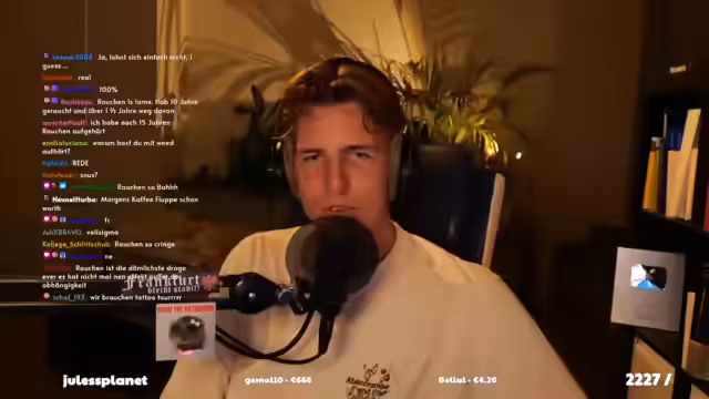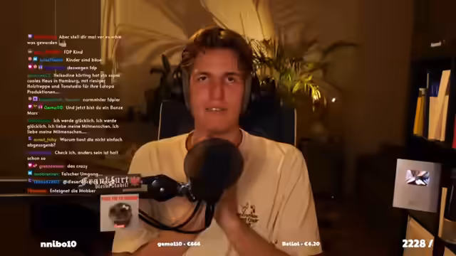 00:08:59Der Streamer begrüßt die Zuschauer, insbesondere die Erst-Time-Chatter, und freut sich über deren Teilnahme. Er entschuldigt sich für die Abwesenheit am Wochenende, da er in Hessen war, um mit einem Freund aus Frankfurt eine Demo in Friedberg zu besuchen. Dabei traf er auch Hessencam und sprach kurz mit ihm, bevor dieser in einen Fahrradurlaub nach Spanien aufbrach. Der Streamer bedankt sich für die Unterstützung durch Subs und Bits und betont die Wichtigkeit von Liebe und Unterstützung im Chat. Er erwähnt, dass er immer noch zittert, möglicherweise aufgrund eines Betrugs, aber er würde Hessencam mit Kusshand betrügen. Er schildert seine Erfahrung mit einem Video, das ihn dazu brachte, seine Entscheidung gegen Kinder zu festigen, und beschreibt seinen anfänglichen Traum von Zwillingen, der nun verflogen ist. Er drückt seinen Hass auf die Zuschauer aus, betont aber, dass er für Geld alles tun würde.