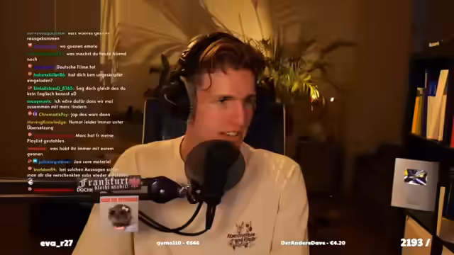 01:59:22Es wird von einer Wohnungssuche berichtet und von einem Besichtigungstermin für eine crazy Wohnung mit Stuck. Es wird die Vorfreude auf die Wohnung mit Deckenstuck und Parkett ausgedrückt. Es wird sich für die 50 Subs bedankt und es werden persönliche Einblicke in den eigenen Geschmack gegeben. Es wird über den Tisch und die Marke des Tisches gesprochen, sowie über andere Gegenstände auf dem Tisch wie Sonnencreme, Stifte und Geld. Es wird sich über die zerrissene Nudelpackung lustig gemacht. Es werden weitere Subs und Prime-Subs erwähnt und es wird sich dafür bedankt. Es wird über die Diskussion mit der Ex-Freundin über das Schauen von Filmen und Serien auf Englisch oder Deutsch gesprochen. Es wird betont, dass Englisch besser ist, aber dass die Ex-Freundin sich auch mal auf Deutsch einlassen könnte.