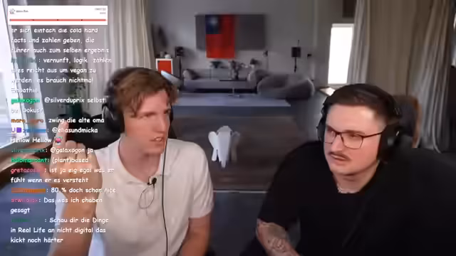 00:37:07Die Gesprächsrunde wendet sich den sehr unterschiedlichen Lebensstilen der beiden Streamer zu. Der Gast gibt offen zu, seine Ernährung sei monoton: Er habe die ganze Woche nur Nudeln mit Kesse oder Müsli gegessen. Der andere Streamer ist schockiert über diese mangelnde Abwechslung und stellt fest, dass dies einem 'Vorbeileben' gleichkomme. Es wird die These aufgestellt, dass ein breiteres Lebenserfahrungsspektrum notwendig ist, um ein erfülltes Leben zu führen, was zu einem Plan für gegenseitiges Lernen führt.