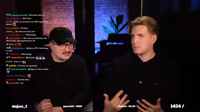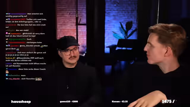 00:06:20Der Stream beginnt mit der Ankunft von Vincent, der eingeladen wurde, um ein Bild an die Wand zu nageln und für Aufmerksamkeit zu sorgen. Es folgt eine Diskussion über die Raumgestaltung, insbesondere die Dunkelheit, die benötigt wird, um Kamera-Flimmern zu vermeiden, und ein auffälliger, beleuchteter Kühlschrank mit Getränken. Ein Plan wird geschmiedet, eine Instagram-Story zu erstellen, um mehr Zuschauer zu gewinnen und die Reichweite zu erhöhen, wobei die Bedeutung von Social Media für die Aufmerksamkeitsökonomie betont wird.