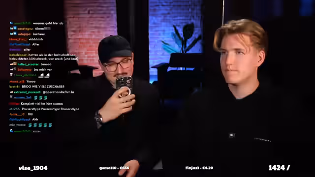 01:30:45Ein unerwarteter Anruf unterbricht den Stream. Der Anrufer, der sich als Freund outet, stellt einen Witz über Linke und Bohrmaschinen ('mindestens zwei') und gesteht dann überraschend, noch nie in seinem Leben eine Bohrmaschine benutzt zu haben. Nach Nachfragen gibt er zu, auch nie Nudeln gekocht zu haben – er legte sie trocken in die Pfanne. Die Offenbarung löst bei den Streamern Unglauben und Amusement aus. Der Anrufer erwähnt zudem, dass er Kinder hat, aber nie mit ihnen gebastelt hat, was die absurde Tiefe seiner Handwerksunfähigkeit unterstreicht.