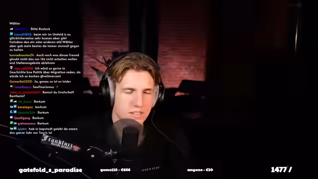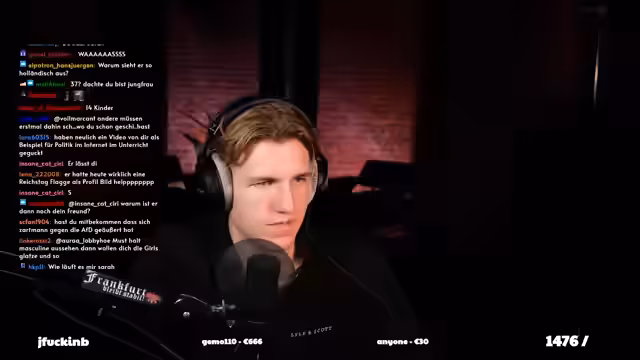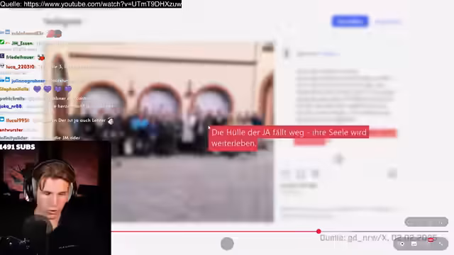 03:41:34Der Streamer beginnt mit der Analyse eines Videos über einen Jugendabend der AfD in Cottbus, wobei er humorvoll auf die Kleidung und das Ambiente der Teilnehmer eingeht. Ein Jugendlicher äußert, dass Höcke die 'Wahrheit' sage und Themen anspreche, die die Jugend bewegen, insbesondere die Migrationspolitik. Er kritisiert, dass Lehrer Schüler unterdrücken würden, wenn diese anders denken. Der Streamer interpretiert dies als Populismus, der Höcke zum 'Feindbild' mache und Jugendliche in diesem Alter zu 'einfachen Opfern' mache. Die Veranstaltung wird als 'Filmeabend mit einem Film über Höcke' beschrieben. Ein weiteres AfD-Mitglied, das erst seit kurzem politisch aktiv ist, äußert sich zur Jugendorganisation und deren Potenzial. Der Streamer empfindet die Aussagen als 'gescriptet und auswendig gelernt' und vermutet, dass der Jugendliche dort ein Umfeld und Freunde sucht. Die Frage nach Drogenkonsum bei den Teilnehmern wird aufgeworfen, kann aber vom Streamer nicht beurteilt werden. Ein junger Mann aus Cottbus äußert seine Ängste vor Ausländern in der Nacht, woraufhin der Streamer die Frage aufwirft, ob diese Angst auf realen Taten oder Vorurteilen basiert und ob die Ausländer nicht auch Angst vor ihm haben könnten. Die Diskussion über den Slogan 'Ausländer raus' wird angesprochen, und der Jugendliche gibt an, ihn zu kennen und betrunken schon mitgemacht zu haben. Abschließend wird die wirtschaftliche Situation Deutschlands thematisiert und die Frage nach den Ursachen gestellt.