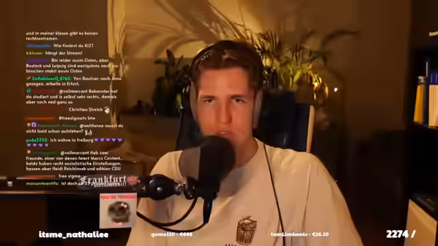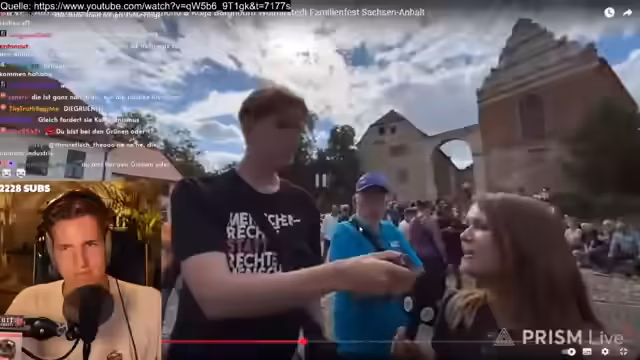 00:08:50Nachdem ich verschlafen habe, entschloss ich mich spontan zu streamen und meine Erfahrungen auf dem AfD-Sommerfest zu teilen. Ich schildere, wie ich im Alice Weidel T-Shirt und versteckter GoPro das Fest besuchte und erschreckende Einblicke gewann. Ein Gespräch mit einem 13-Jährigen, der Hitlers vermeintliche Ordnungspolitik lobte, schockierte mich zutiefst. Ich sah drei Hitlergrüße und begegnete einem Rechtsextremisten mit einem 'Deutsche Jungs'-T-Shirt, der meinen Kameramann attackierte. Die Teilnehmer tarnten sich als Demokraten, waren aber von erschreckender Selbstsicherheit und Unwissenheit geprägt. Eine Frau erzählte von ihrer Selbstheilung von Diabetes und Krebs, während ein anderer mich zu den Zeugen Jehovas bekehren wollte. Trotz dieser deprimierenden Erfahrungen gab mir eine ältere Dame, 'Oma gegen Rechts', etwas Hoffnung zurück. Ich erkannte, dass es wichtig ist, die Jugend zu erreichen, da die ältere Generation kaum zugänglich scheint. Björn Banane trat auf und ich schenkte Ulrich Siegmund einen 'Fuck AfD'-Sticker.